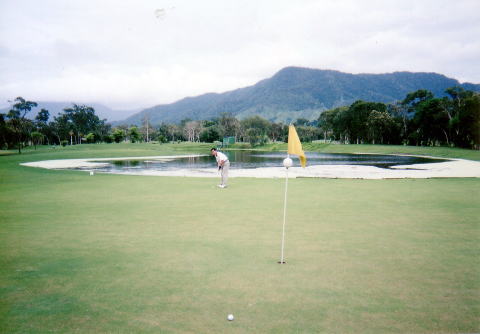 グリーン島でのシュノーケリング、キュランダ高原等々、色々な観光の最終日に2サムで、手引きカートでのラウンド。真夏の熱帯雨林のような状況でのラウンドでへばってしまった事をおぼえている。
